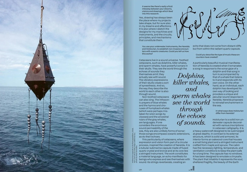 From graphic scores and musical structures to resonance, vibration, and listening, this issue brings together artists who turn sound into image and image into sound. Some works follow the pulse of music, others trace the invisible currents of electromagnetic fields, the voices of whales, or the inner sound of thought and memory.