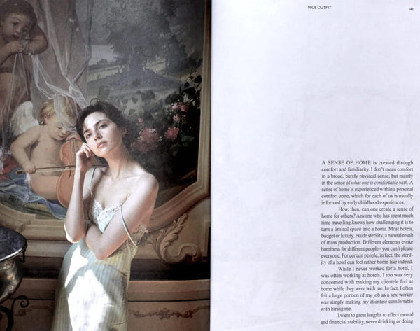 Nice Outfit is an exhibition catalogue and theoretical journal. Issue 2 archives Knock Knock an exhibition of fashion and textiles curated by Felix Choong at Season Gallery in London, December 2022. The show took Peter Galassi’s seminal exhibition Pleasures and Terrors of Domestic Comfort held at MoMA, New York in 1991 as its starting point that used photography to explore the home, its affluent surfaces and the undertones of disquiet and tension as its starting point and localised its own exploration through garments. The exhibition themes become the framework for the accompanying written commissions.